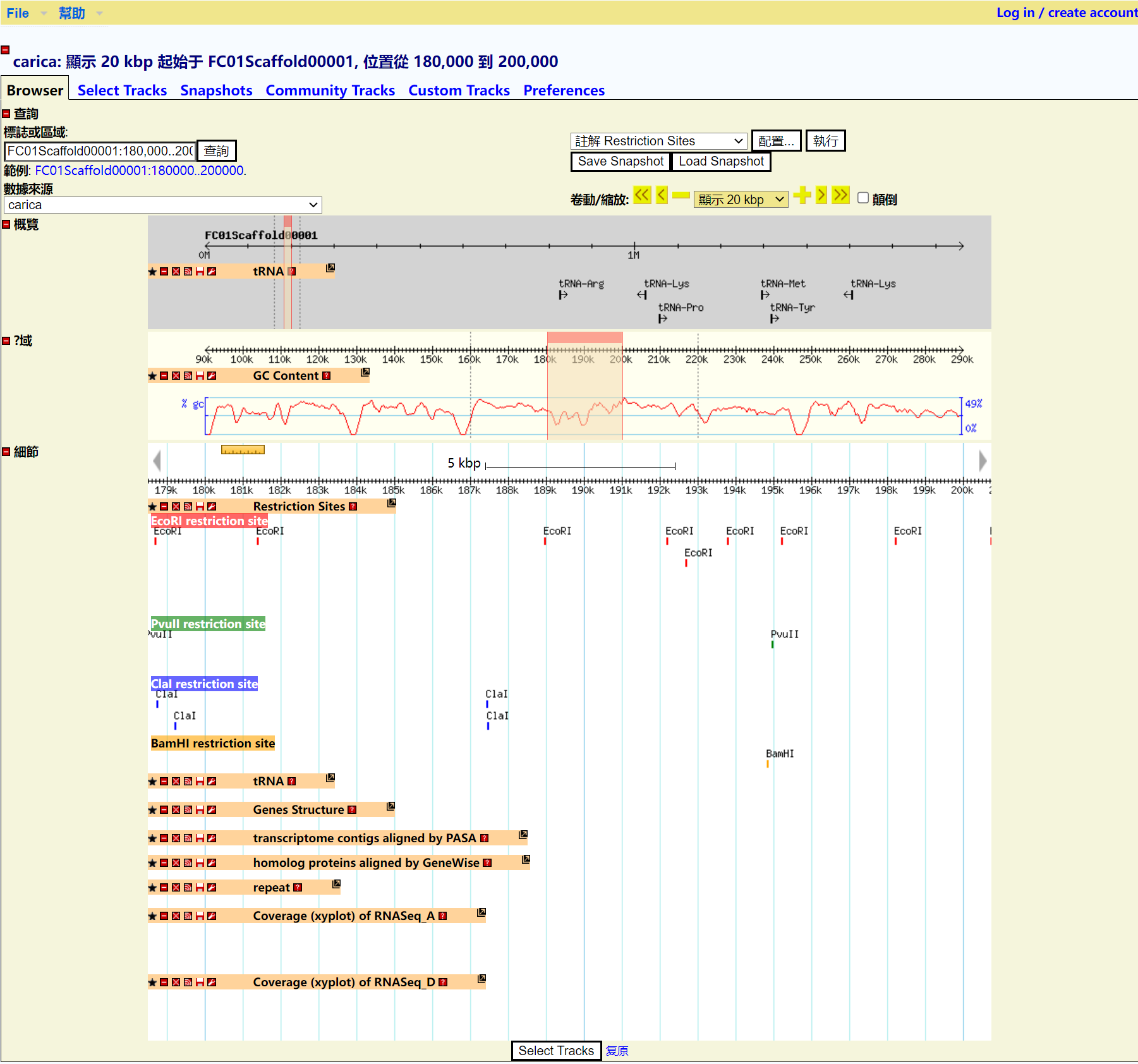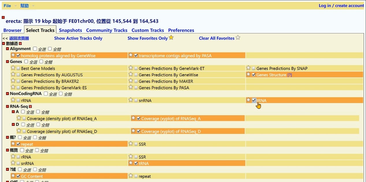 -ncRNA information of five Ficus species, It includes SSR and tRNA information for each genome and is displayed in the GBrowse browser;