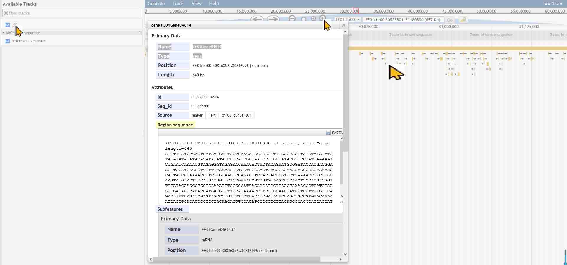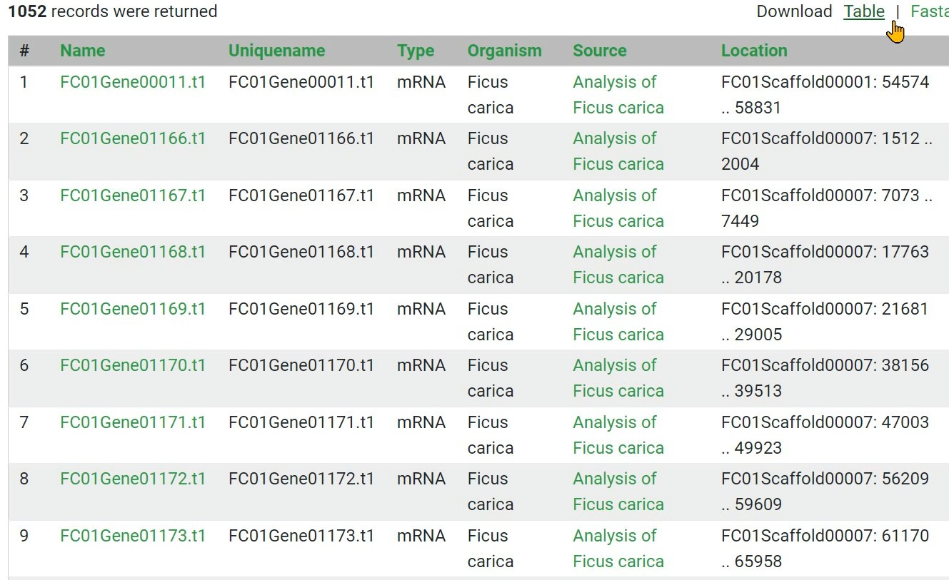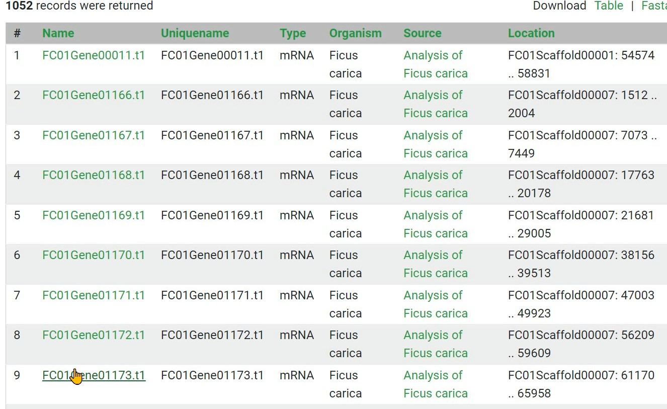 Usually,click on 'gff','+' ,'→' as the picture below, you would see the detailed information of every gene.